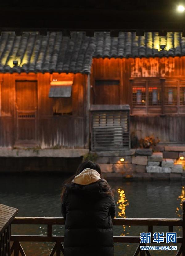 1月11日,游客在河邊觀看烏鎮(zhèn)入夜時的風景。新華社記者 翁忻旸 攝
