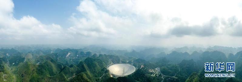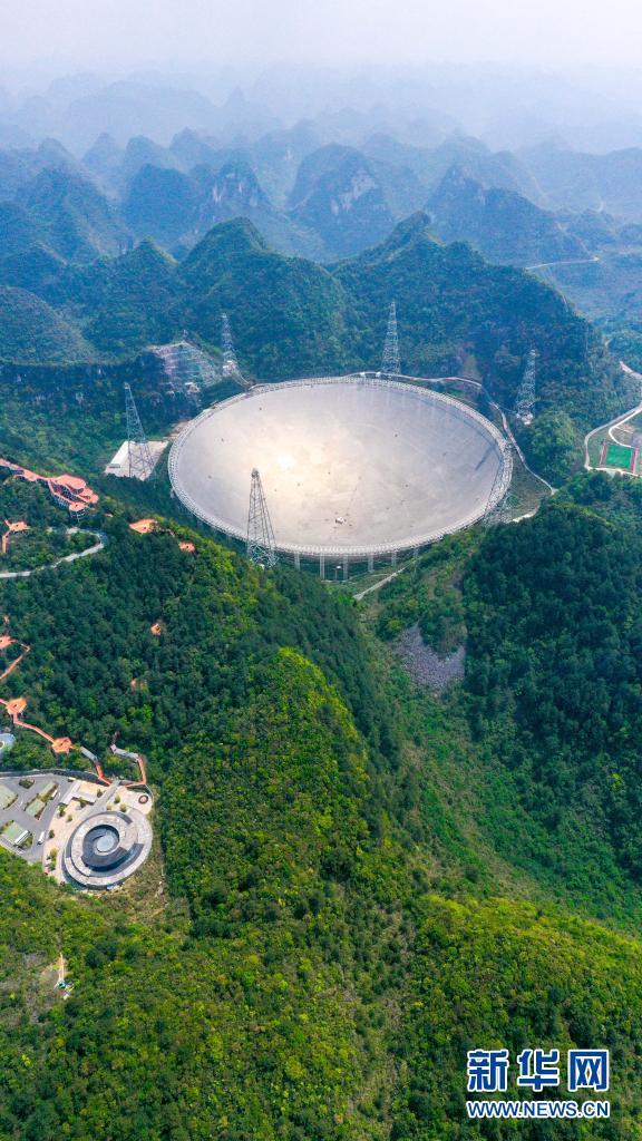 3月28日拍攝的“中國天眼”全景(維護(hù)保養(yǎng)期間拍攝,無人機(jī)照片)。