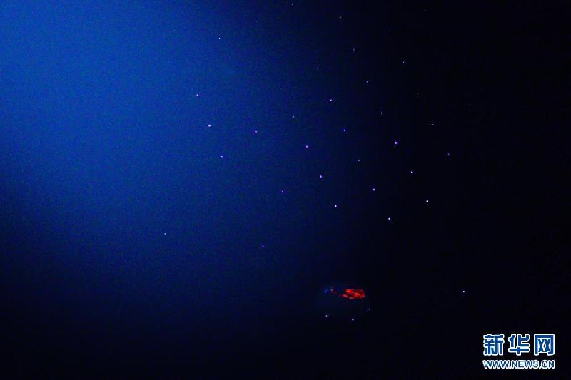 3月28日拍攝的夜幕下的“中國天眼”饋源艙(維護(hù)保養(yǎng)期間拍攝)。