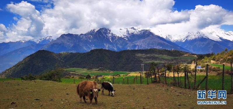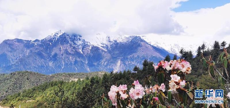 這是5月15日在吉隆溝拍攝的杜鵑花和雪山(手機(jī)照片)。