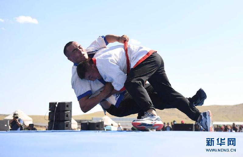6月3日,在新疆阿勒泰地區(qū)福海縣沙爾布拉克轉(zhuǎn)場文化旅游小鎮(zhèn),牧民參加摔跤比賽。