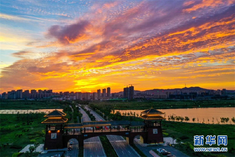 近日,安徽省淮北市雨后天晴,傍晚出現(xiàn)大面積“火燒云”,映紅天際,美不勝收。新華網(wǎng)發(fā)(王文 攝)