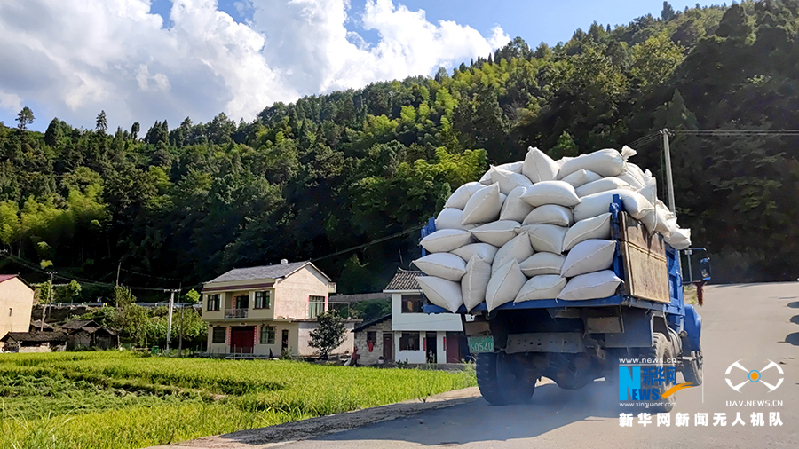 岑鞏縣注溪鎮(zhèn)的國家級雜交水稻制種基地內(nèi),汽車將收獲的雜交水稻種子運送歸倉(8月19日攝)。新華網(wǎng) 周遠鋼 攝
