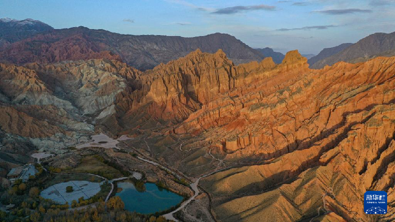10月27日拍攝的青海貴德縣境內(nèi)的丹霞地貌(無人機(jī)照片)。