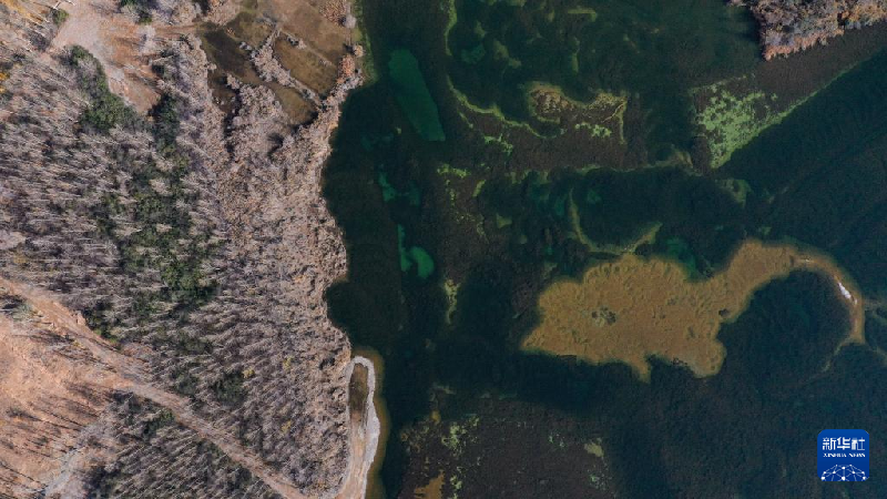 10月28日拍攝的青海貴德縣千姿湖景色(無人機(jī)照片)。