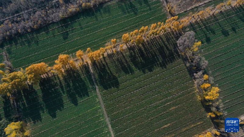 10月28日拍攝的青海貴德縣一處麥田(無人機(jī)照片)。
