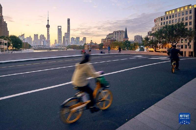 11月4日拍攝的上海乍浦路橋晨景。