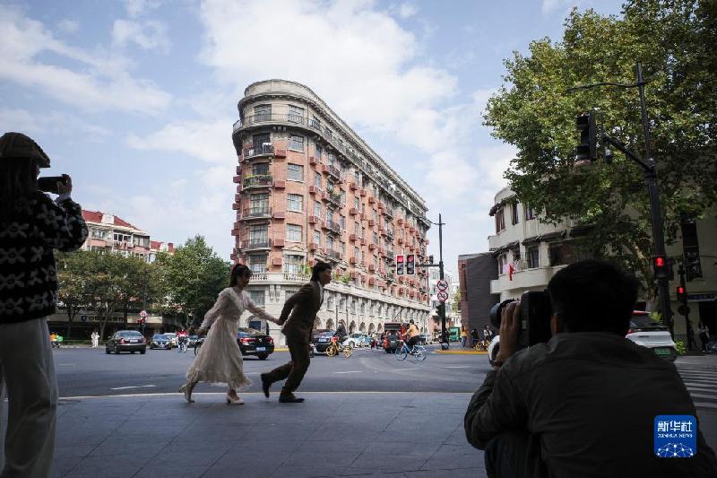 11月3日,人們在上海武康大樓前拍照。