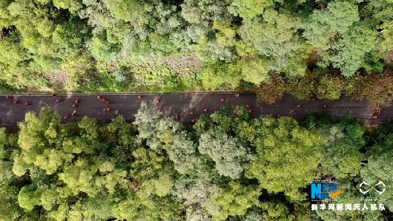 21個(gè)地級(jí)市分別選派出精兵強(qiáng)將參賽,在4天比武時(shí)間展開(kāi)角逐。圖為航拍3000米負(fù)重跑比賽現(xiàn)場(chǎng)。新華網(wǎng)發(fā)