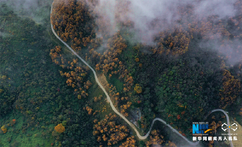 深秋時(shí)節(jié),重慶巫山梨子坪森林公園秋色正濃,萬(wàn)畝落葉松層林盡染,呈現(xiàn)出一派色彩斑斕的壯麗景象。新華網(wǎng)發(fā)(朱云平 攝)