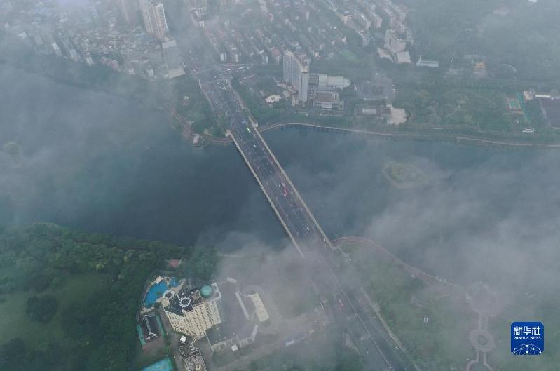 連日來,廣西南寧市出現(xiàn)雨霧天氣,城市景觀籠罩在煙雨中,別具韻味。
