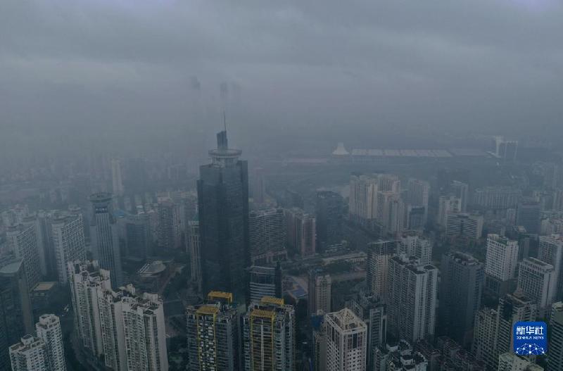 廣西南寧市區(qū)籠罩在雨霧中(11月21日攝,無人機(jī)照片)。