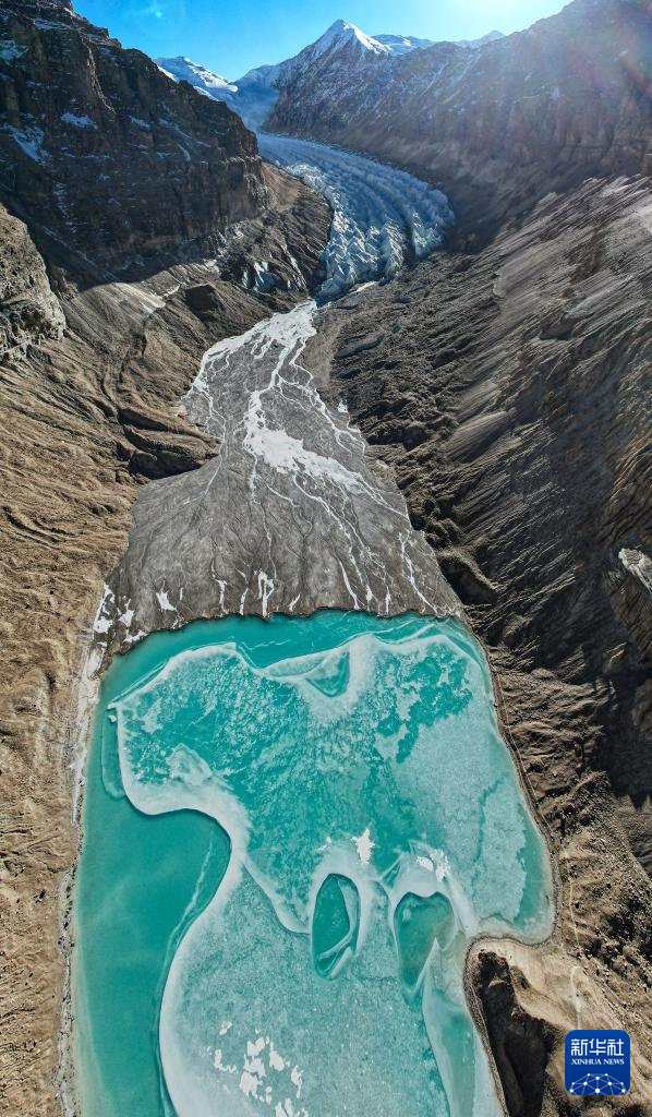 鳥瞰曲登尼瑪冰川(11月27日攝,無人機照片)。