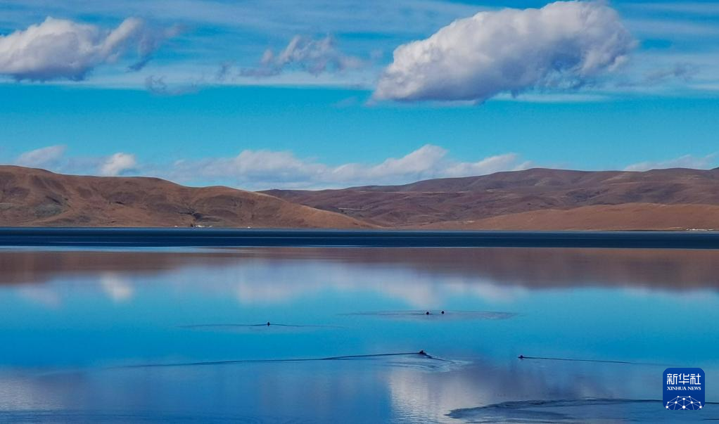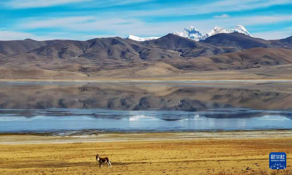 冬日的哲古湖,湖光、雪山、野生動物相映成趣(12月4日攝,手機(jī)照片)。