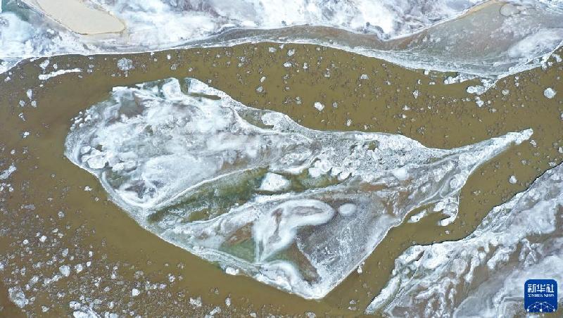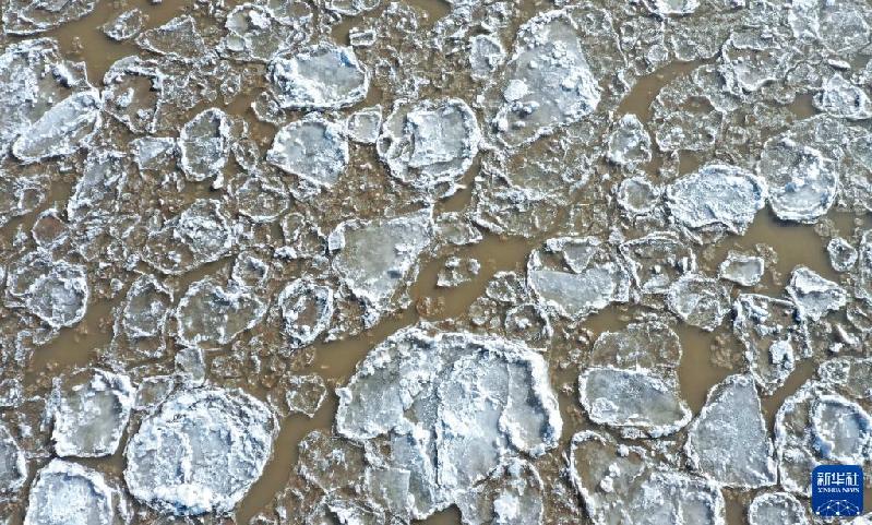 這是12月26日在寧夏石嘴山黃河大橋附近拍攝的黃河流凌(無人機(jī)照片)。近日,黃河寧夏段出現(xiàn)流凌景觀。新華社記者 馮開華 攝