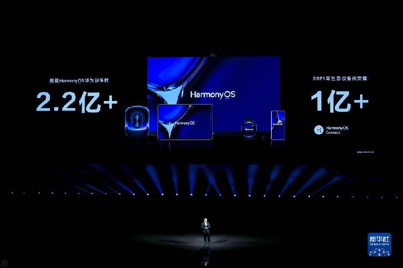 12月23日,華為常務董事、消費者業(yè)務CEO余承東在深圳舉行的發(fā)布會上公布鴻蒙生態(tài)的最新進展。新華社發(fā)(華為供圖)