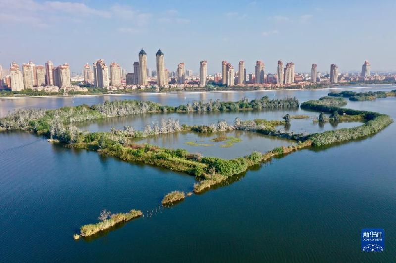 廈門(mén)市集美區(qū)城市濕地景觀(12月8日攝,無(wú)人機(jī)照片)。