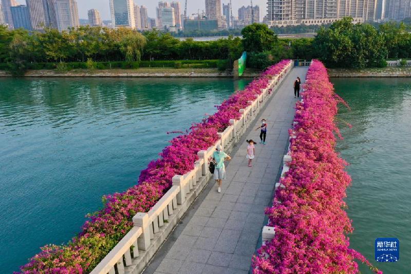 市民在廈門(mén)筼筜湖休閑步道上游玩(9月29日攝,無(wú)人機(jī)照片)。