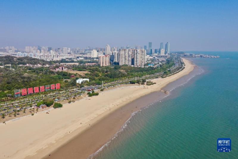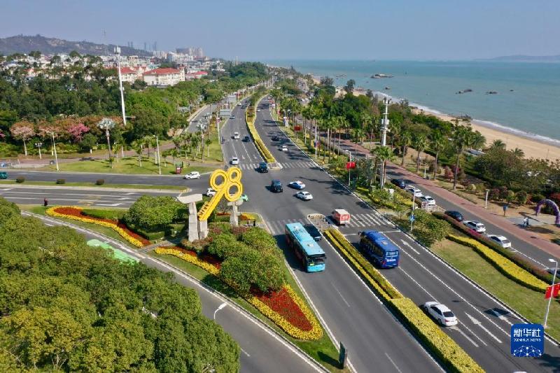 廈門(mén)環(huán)島路一帶的海濱風(fēng)光(12月12日攝,無(wú)人機(jī)照片)。