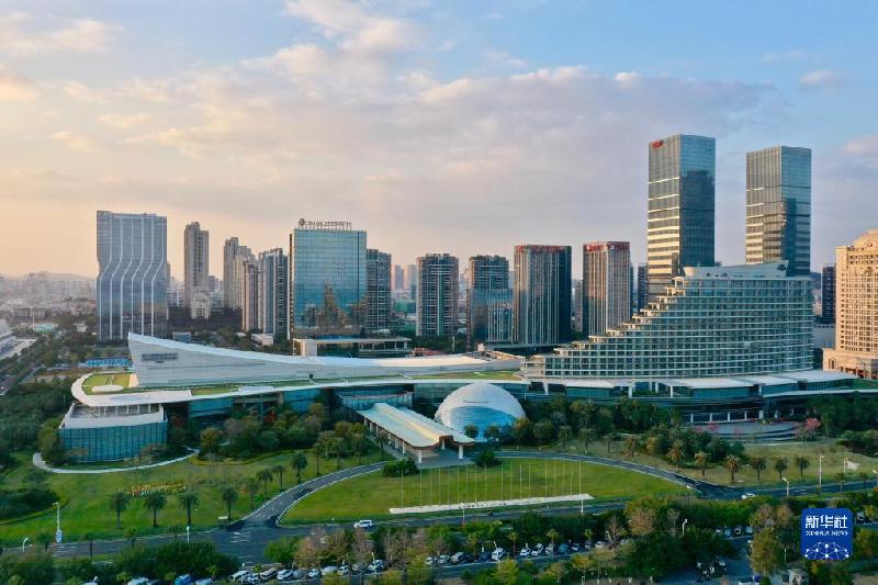 廈門(mén)國(guó)際會(huì)議中心及周邊建筑(12月9日攝,無(wú)人機(jī)照片)。