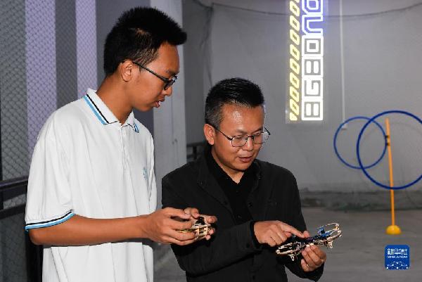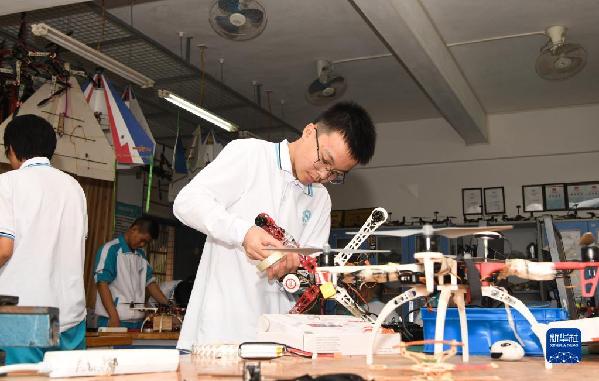 2021年秋季學(xué)期開學(xué)以來,位于海南省??谑械暮D现袑W(xué)落實(shí)“雙減”政策,在校內(nèi)開展每周一次的無人機(jī)課堂,學(xué)生在專業(yè)教師的指導(dǎo)下學(xué)習(xí)飛行知識(shí),自己動(dòng)手組裝無人機(jī),還可以在校內(nèi)的飛行營地體驗(yàn)飛行的快樂。新華社記者 楊冠宇 攝