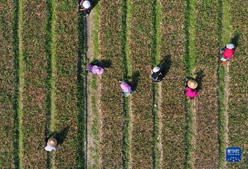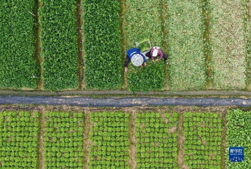 3月9日,廣西南寧市西鄉(xiāng)塘區(qū)石埠街道下靈村村民在采摘蔬菜。