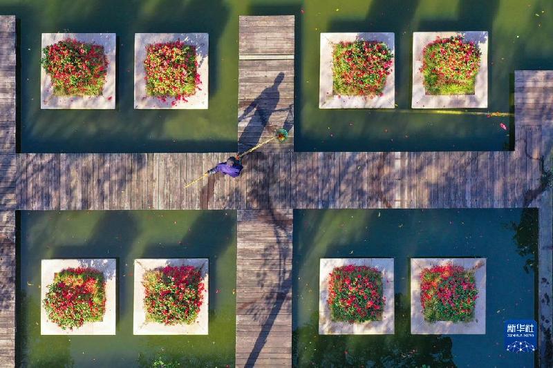 3月10日,市民在美如畫卷的浙江省寧波市植物園內(nèi)游玩賞花(無(wú)人機(jī)照片)。