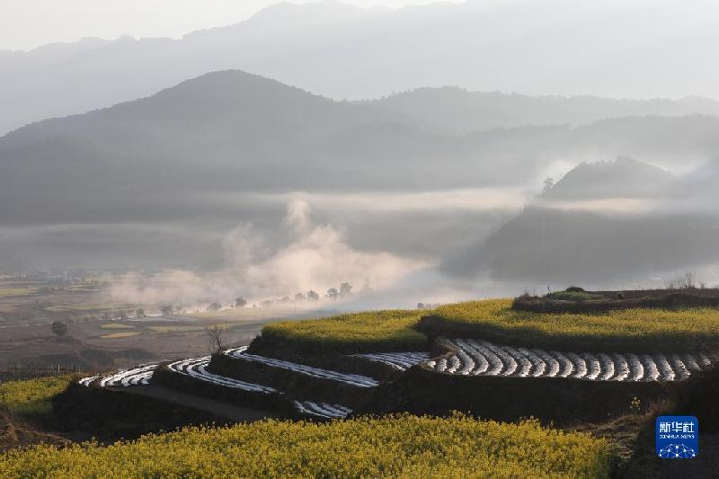 3月10日,在云南省騰沖市曲石鎮(zhèn)清河村,晨霧中的田野如夢(mèng)如幻。