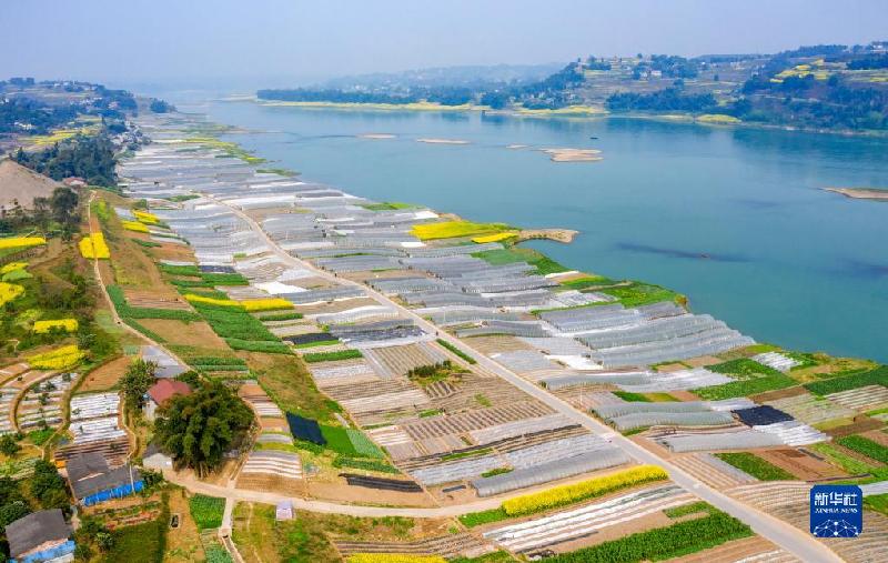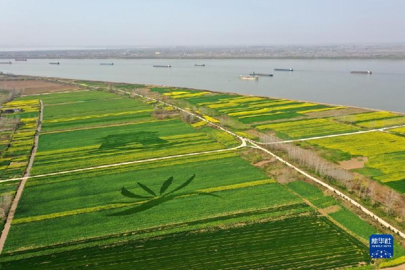 3月10日在四川省內(nèi)江市東興區(qū)田家鎮(zhèn)拍攝的長(zhǎng)江田園如畫春色(無(wú)人機(jī)照片)。