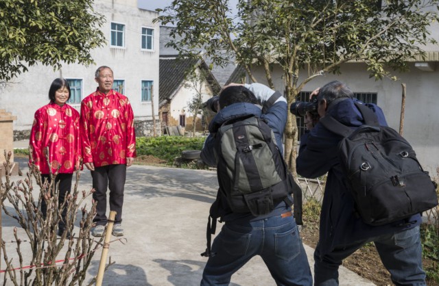 1月19日,貴州省黔西市洪水鎮(zhèn)解放村農(nóng)民攝影家協(xié)會會員為脫貧農(nóng)戶拍照。(受訪者供圖)