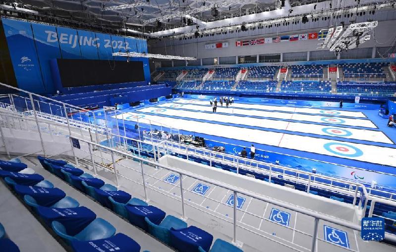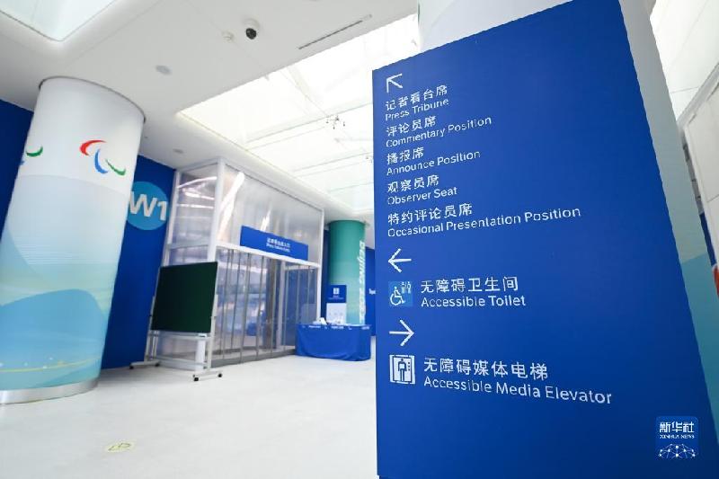這是在國家游泳中心“冰立方”內(nèi)拍攝的無障礙看臺(2022年3月1日攝)。