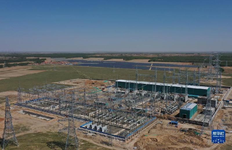 這是張家口市張北1000千伏特高壓變電站建設(shè)工地(無人機照片,2020年6月3日攝)。