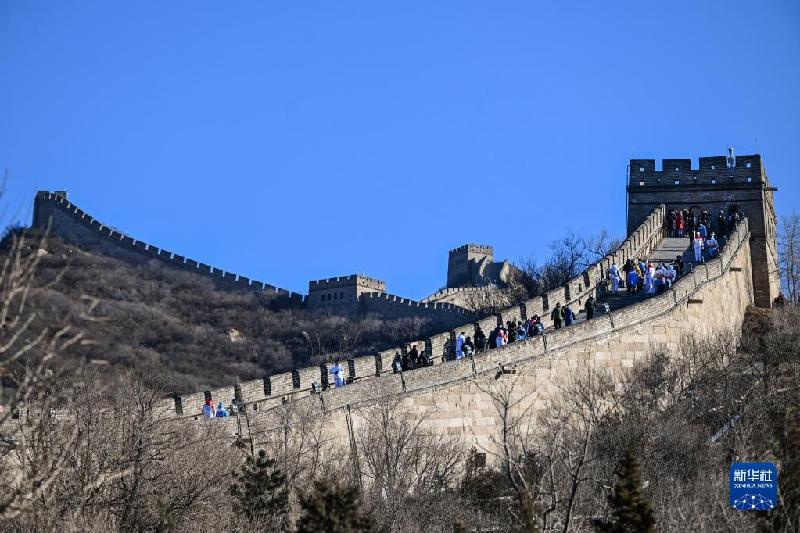 這是北京2022年冬奧會火炬在八達嶺長城傳遞(2022年2月3日攝)。