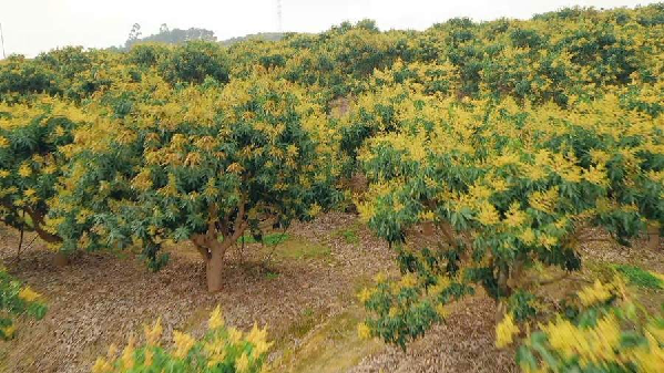 連日來,在廣西百色右江區(qū)四塘鎮(zhèn)六合村的全國“一村一品”芒果示范基地里,這里的17800多畝芒果樹正開著淡黃色的小花。