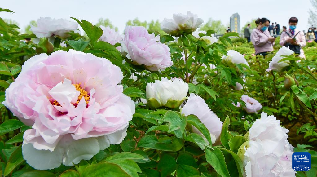 4月4日,在河南省洛陽市隋唐城遺址植物園欣賞盛開的牡丹花。