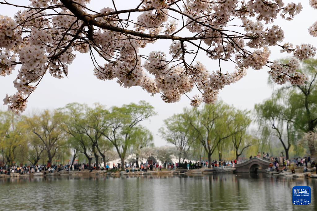 4月4日,游客在北京玉淵潭公園踏青賞花。