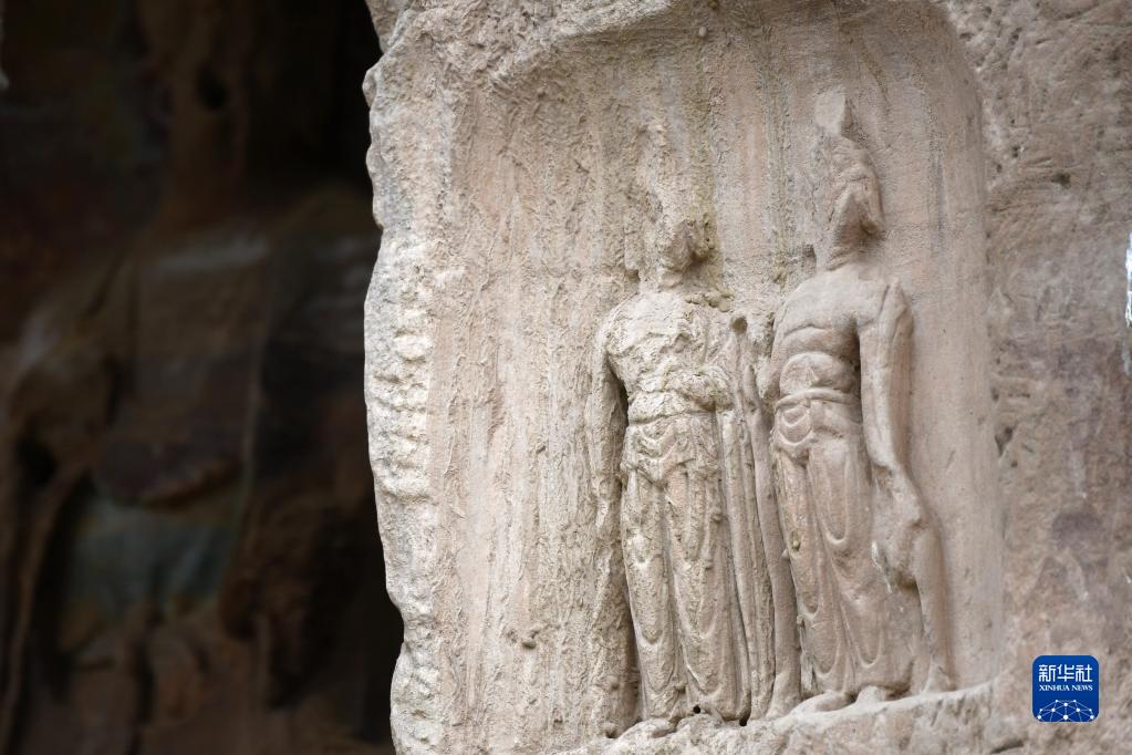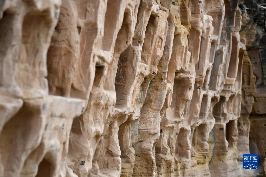 這是5月26日在甘肅省慶陽市北石窟寺拍攝的石窟造像。