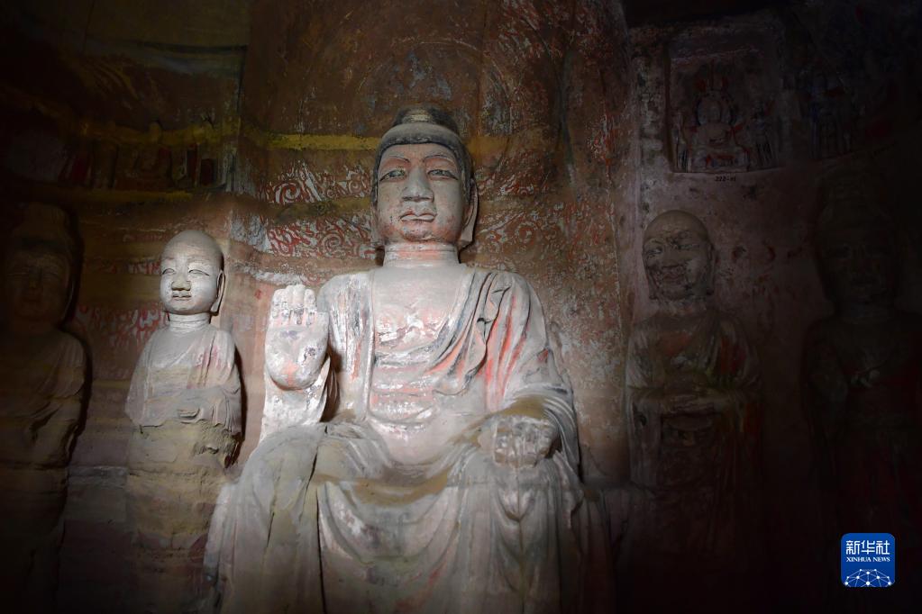 這是5月26日在甘肅省慶陽市北石窟寺第222窟拍攝的造像。