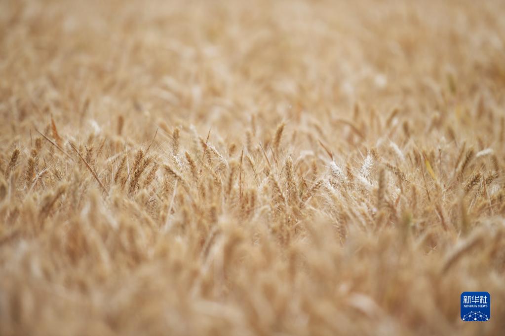 5月27日在河南省駐馬店市西平縣二郎鎮(zhèn)張堯村高標(biāo)準(zhǔn)農(nóng)田示范區(qū)拍攝的小麥。