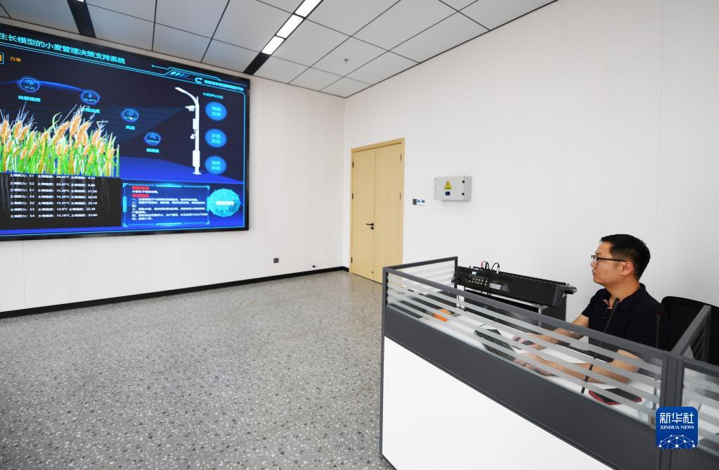 5月27日,在河南省駐馬店市西平縣高標(biāo)準(zhǔn)農(nóng)田管理服務(wù)中心,工作人員通過指揮調(diào)度平臺監(jiān)控小麥生長情況。