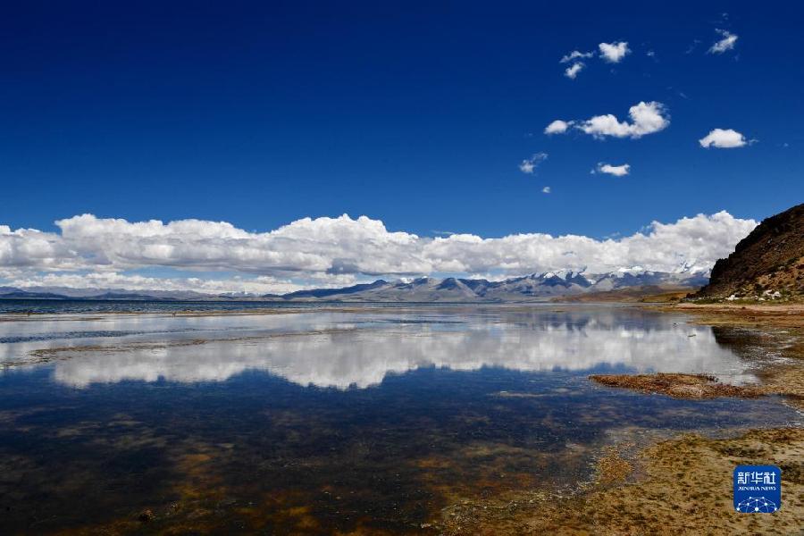 藍(lán)天白云下的瑪旁雍錯(cuò)(8月2日攝)。