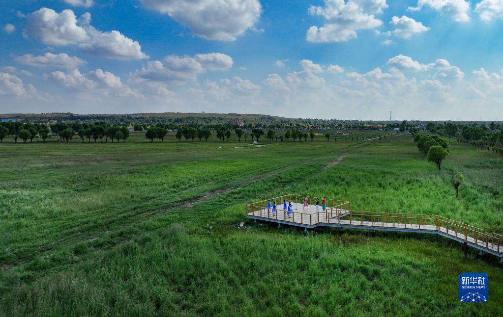 8月5日,游人在爾林兔大草原游玩。