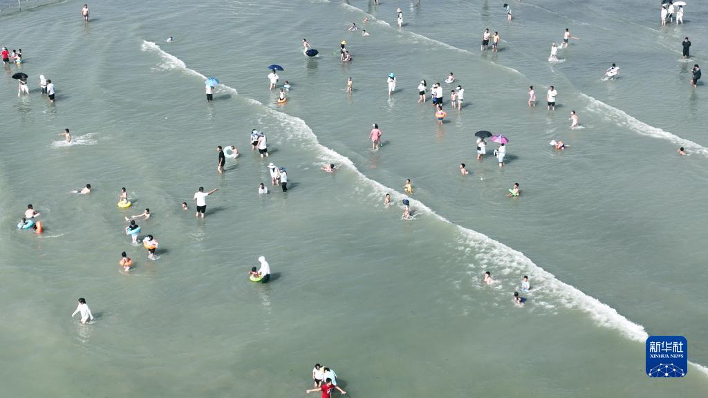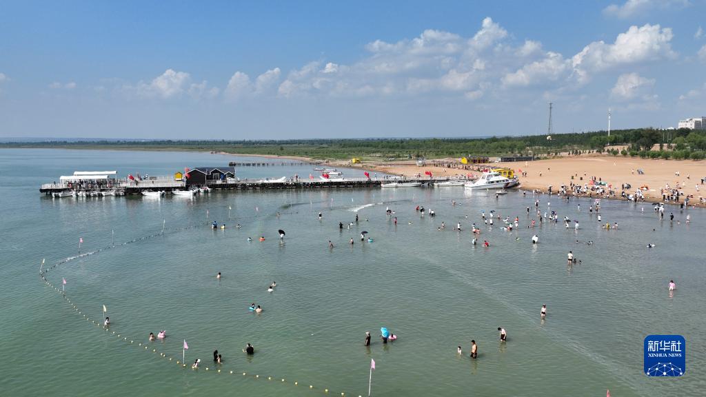 8月5日,游人在紅堿淖景區(qū)休閑(無人機照片)。
