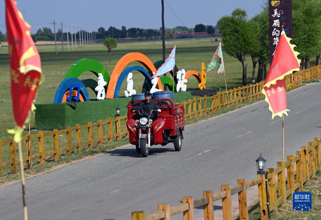 8月5日,村民行駛在爾林兔大草原“音樂之路”上。