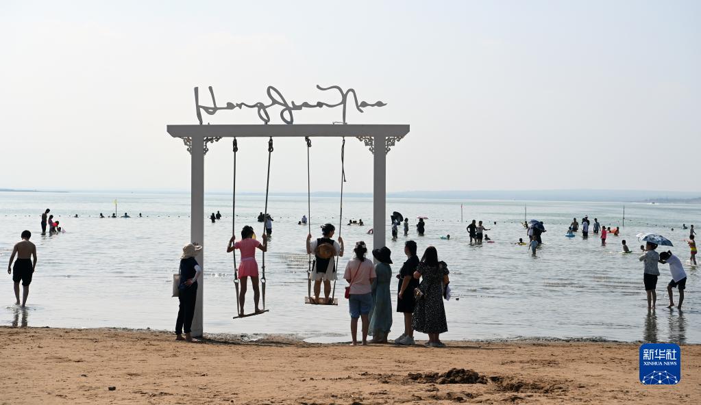 8月5日,游人在紅堿淖景區(qū)休閑。