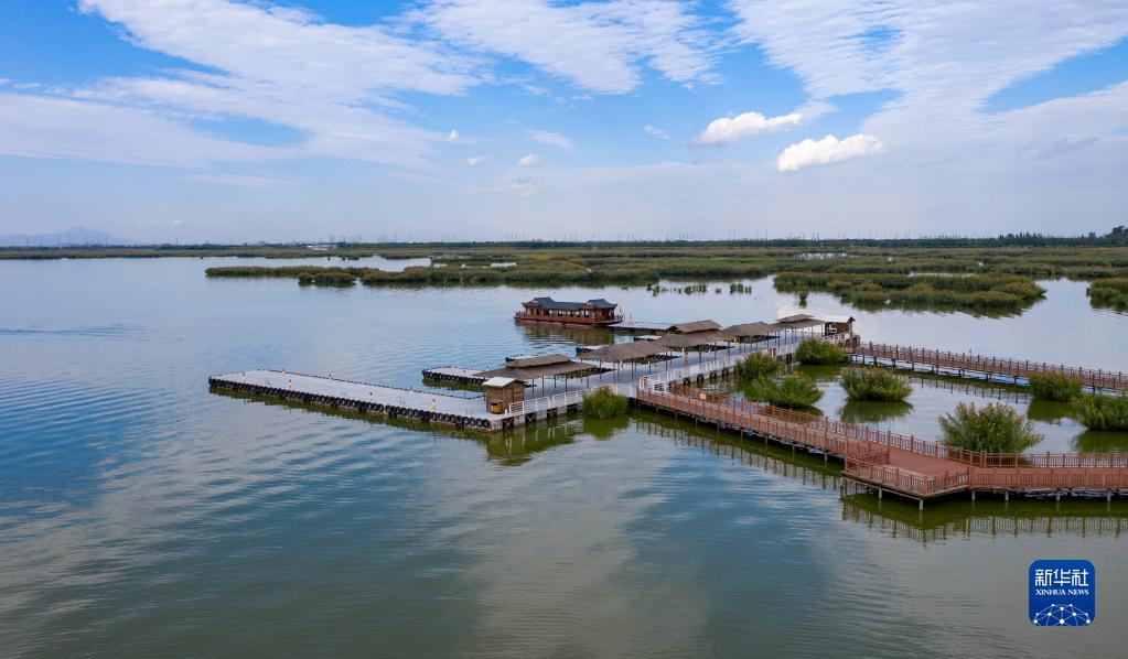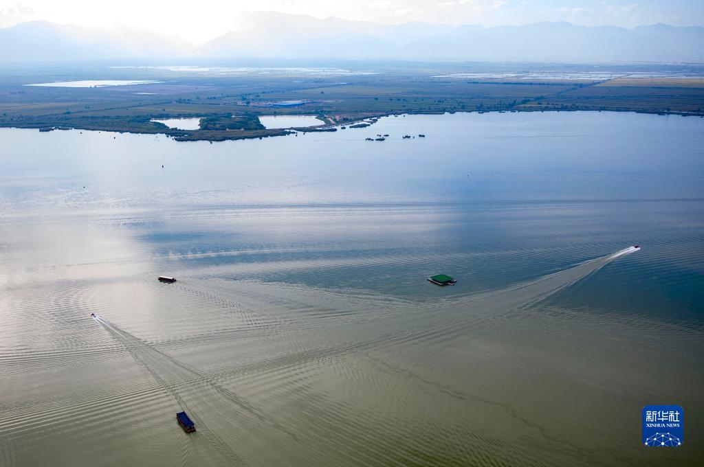 初秋時節(jié),位于寧夏銀川市以北42公里處的石嘴山市平羅縣境內(nèi)的沙湖景區(qū)處處呈現(xiàn)沙水相依、碧波萬頃的美麗畫卷。