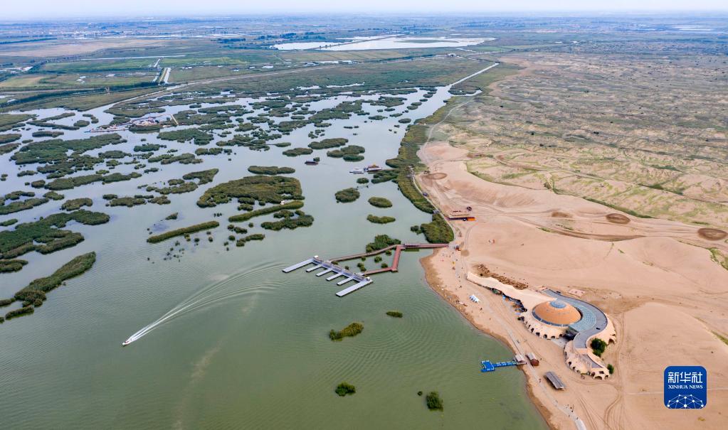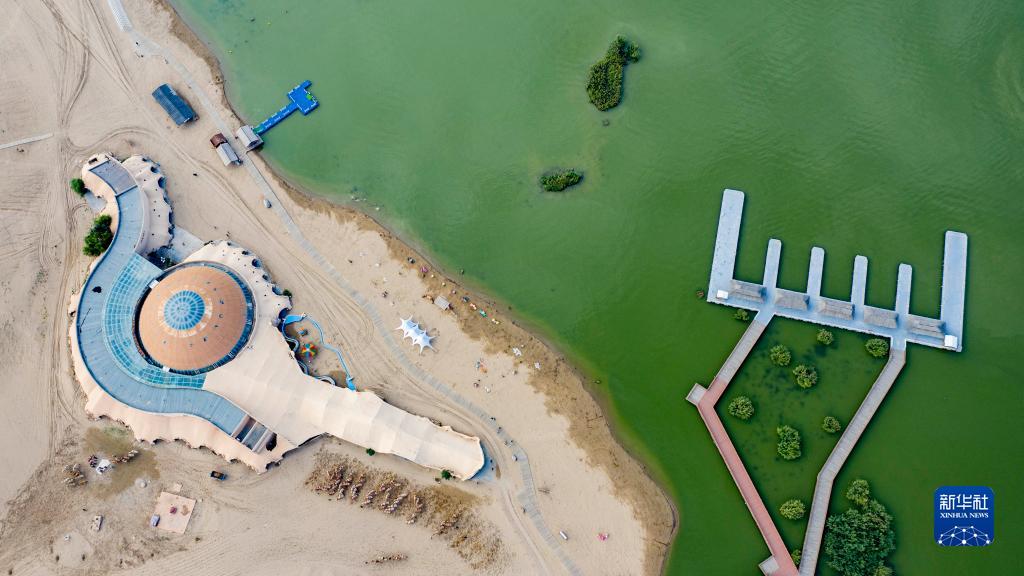 這是8月28日拍攝的寧夏沙湖景區(qū)(無人機照片)。