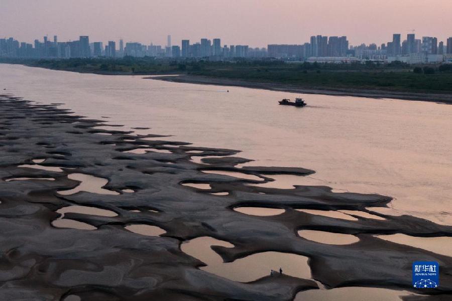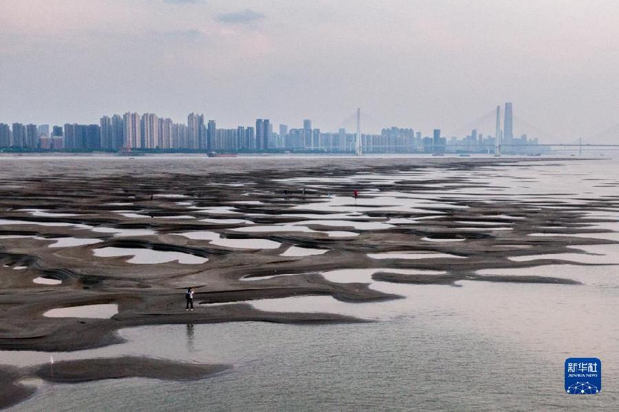 近日,長江武漢段水位持續(xù)降低,武漢市天興洲露出大片灘涂。