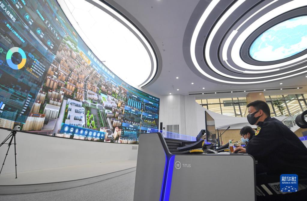 2022年3月29日,工作人員在雄安新區(qū)容東城市運營管理中心監(jiān)管平臺工作。