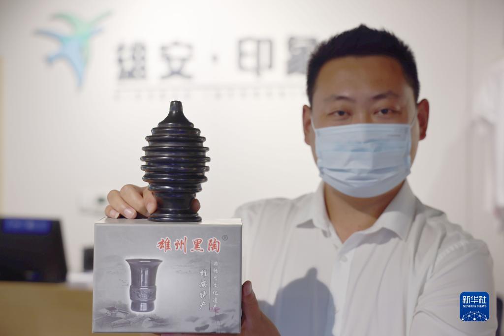 2022年9月6日,工作人員在展示雄安新區(qū)的文創(chuàng)紀念品。